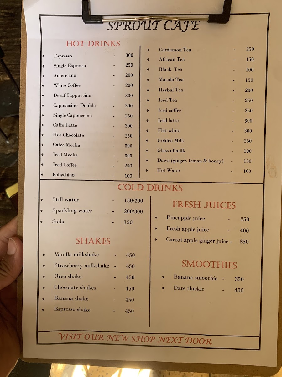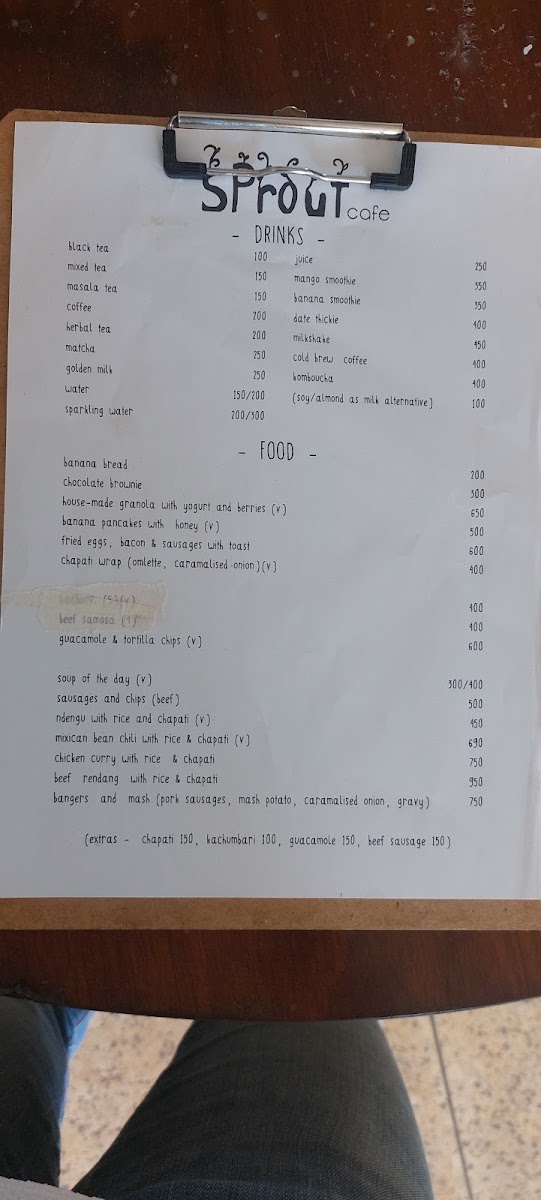 Sprout Cafe Sagana Menu